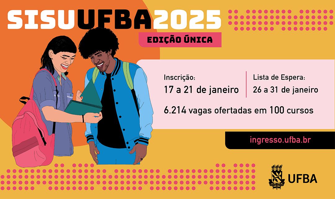 Confira o edital com as ofertas e orientações sobre o processo seletivo em: ingresso.ufba.br