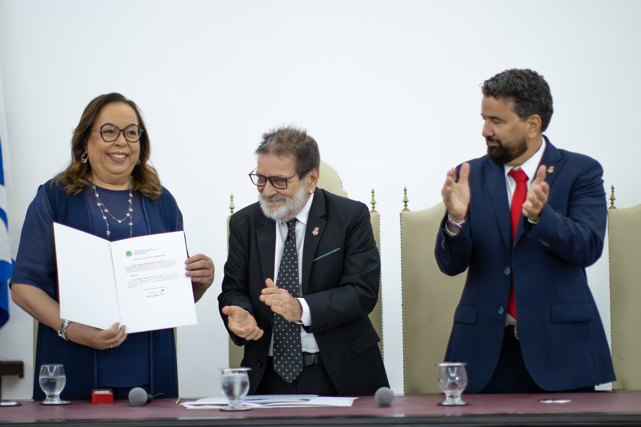 O reitor Paulo Miguez deu posse às professoras Joilda Silva Nery e Sheila Maria Alvim de Matos, nos cargos de diretora e vice-diretora, respectivamente, do Instituto de Saúde Coletiva da Universidade Federal da Bahia- ISC/UFBA (gestão 2025 a 2029), em solenidade realizada no Salão Nobre da Reitoria, no dia 06 de novembro de 2025.