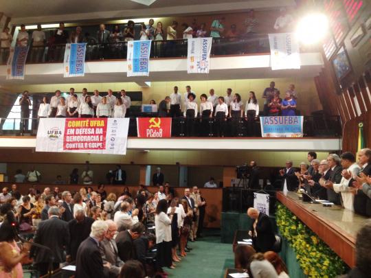 Num clima de congraçamento e participação não faltaram depoimentos emocionados e de reconhecimento do papel da instituição na sociedade. Nos discursos proferidos pelas personalidades que subiram ao púlpito da ALBA, a tônica era única: a UFBA não é so importante para a Bahia, mas também no cenário nacional do conheciemnto e da pesquisa.