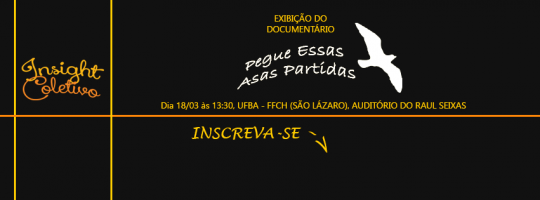 Acontece no dia 18 de março a 2ª Edição do Cine Insight, que exibirá o documentário Pegue Essas Asas Partidas (Daniel Mackler), um relato da trajetória de duas pacientes que se recuperaram da esquizofrenia grave sem a utilização de medicamentos psiquiátricos. Além da exibição do filme – que começa pontualmente às 14h – será realizada na sequência uma Mesa de Debate sobre o assunto, com a participação de Gabriel Peters (professor do Departamento de Sociologia da UFBA); Marcelo Veras (psiquiatra e psicanalista, diretor do Hospital Juliano Moreira de 2000 a 2007); e Milena Lisboa (professora de Psicologia na área de Saúde Mental e Psicologia Social). As atividades acontecerão no Auditório do Pavilhão de Aulas Raul Seixas, na Faculdade de Filosofia e Ciências Humanas da UFBA – Campus São Lázaro.