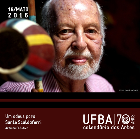 A Universidade Federal da Bahia lamenta profundamente o falecimento do artista plástico Sante Scaldaferri, graduado na Escola de Belas Artes desta Universidade. O sepultamento será realizado hoje (16/05), às 17 horas, no Cemitério do Campo Santo – Federação. A UFBA manifesta suas condolências aos familiares, amigos e colegas pela irreparável perda ocorrida no cenário artístico local e nacional.
