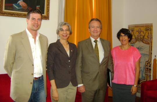 A reitora Dora Leal Rosa, acompanhada pela Assessora para Assuntos Internacionais da UFBA, professora Ana Rosa Ramos, e pela Gerente de Intercâmbio, Cláudia Muniz Barreto, recebeu na manhã de hoje, dia 05 de abril, a visita do Embaixador da Bélgica, Dr. Claude Misson, e o do Cônsul Honorário, Dr. Stéphane Pérée. A visita teve o propósito de reforçar o quadro de cooperação acadêmica internacional entre Brasil e Bélgica.